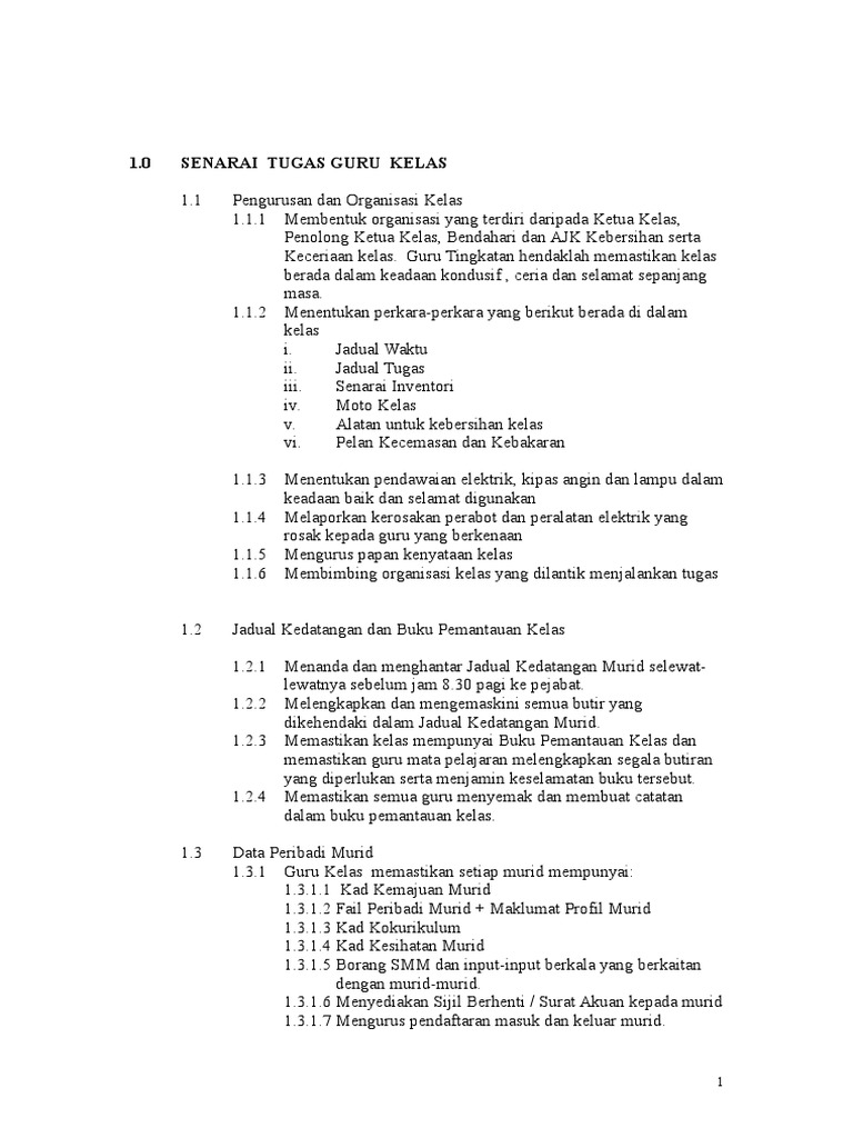 Doc Tanggungjawab Guru Kelas Senarai Tugas Guru Kelas Lisha Baby Academia Edu