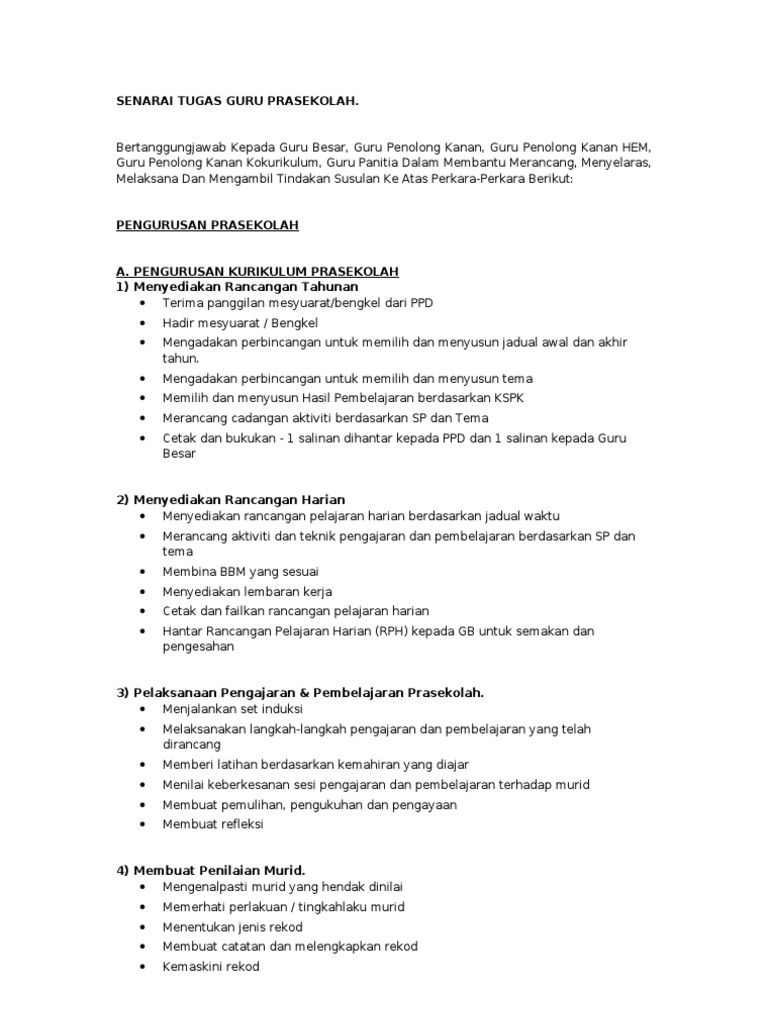 Fail Meja Guru Prasekolah Senarai Tugas Harian