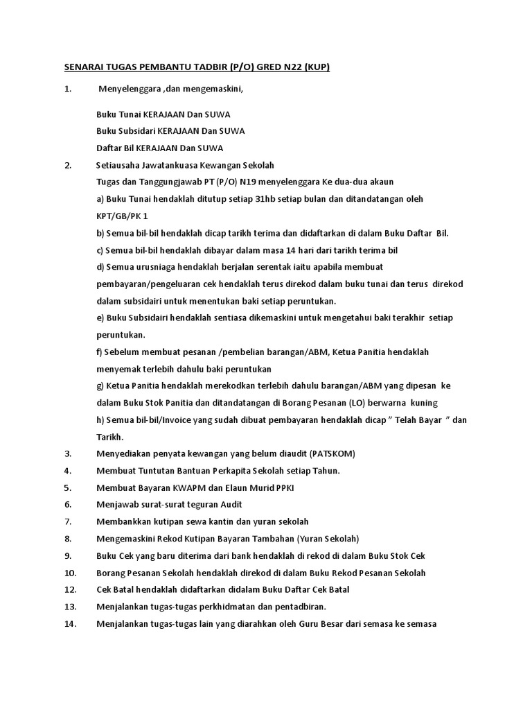 Senarai Tugas Pembantu Tadbir N19