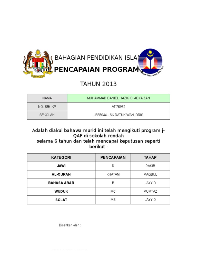 Sijil Jqaf Tahun 6 Doc
