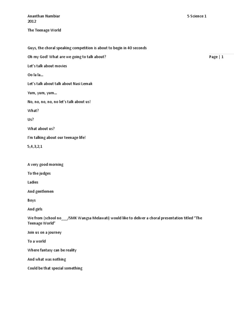 Collection Of Coral Speaking Script Docx English Language Personal Growth