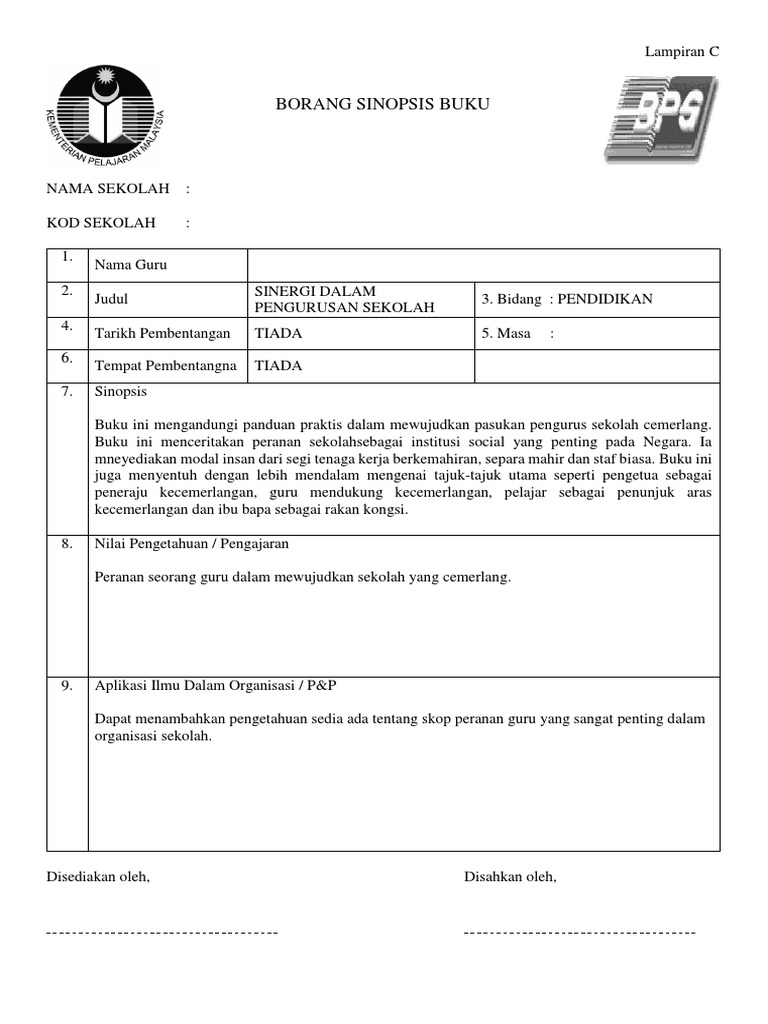 Borang Sinopsis Buku Splkpm