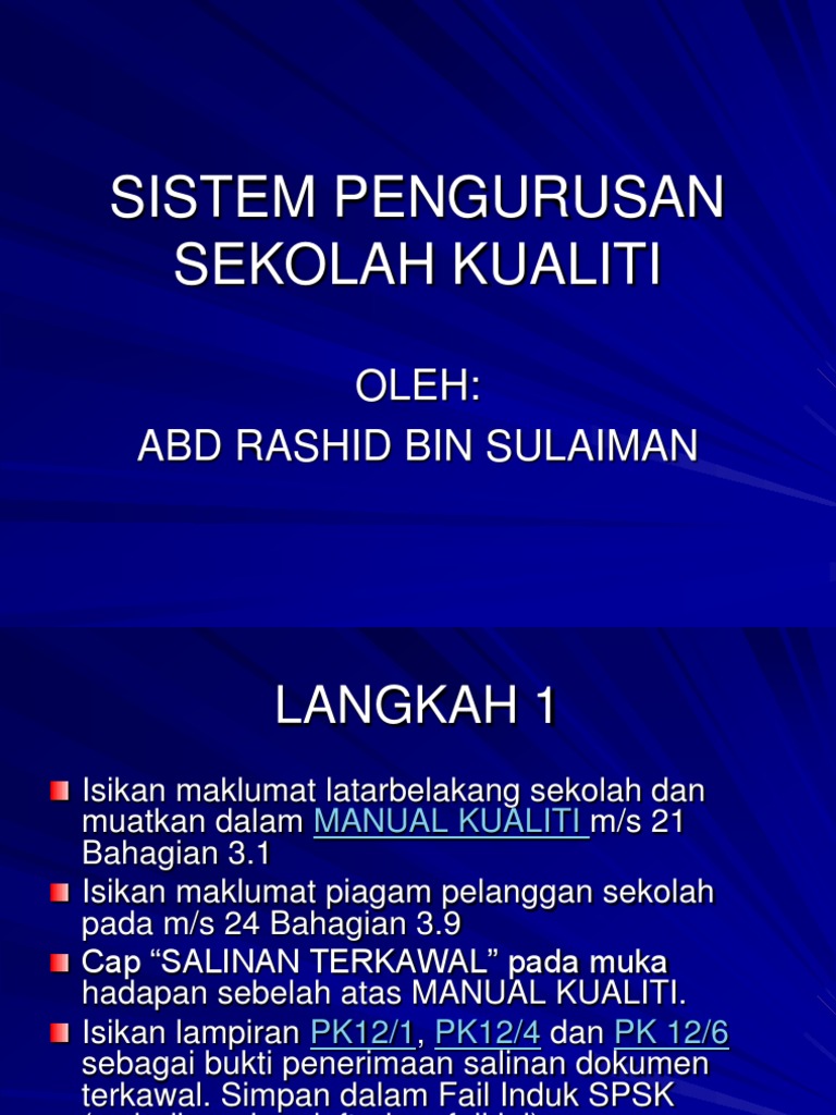 Sistem Pengurusan Sekolah Kualiti Spsk Authorstream