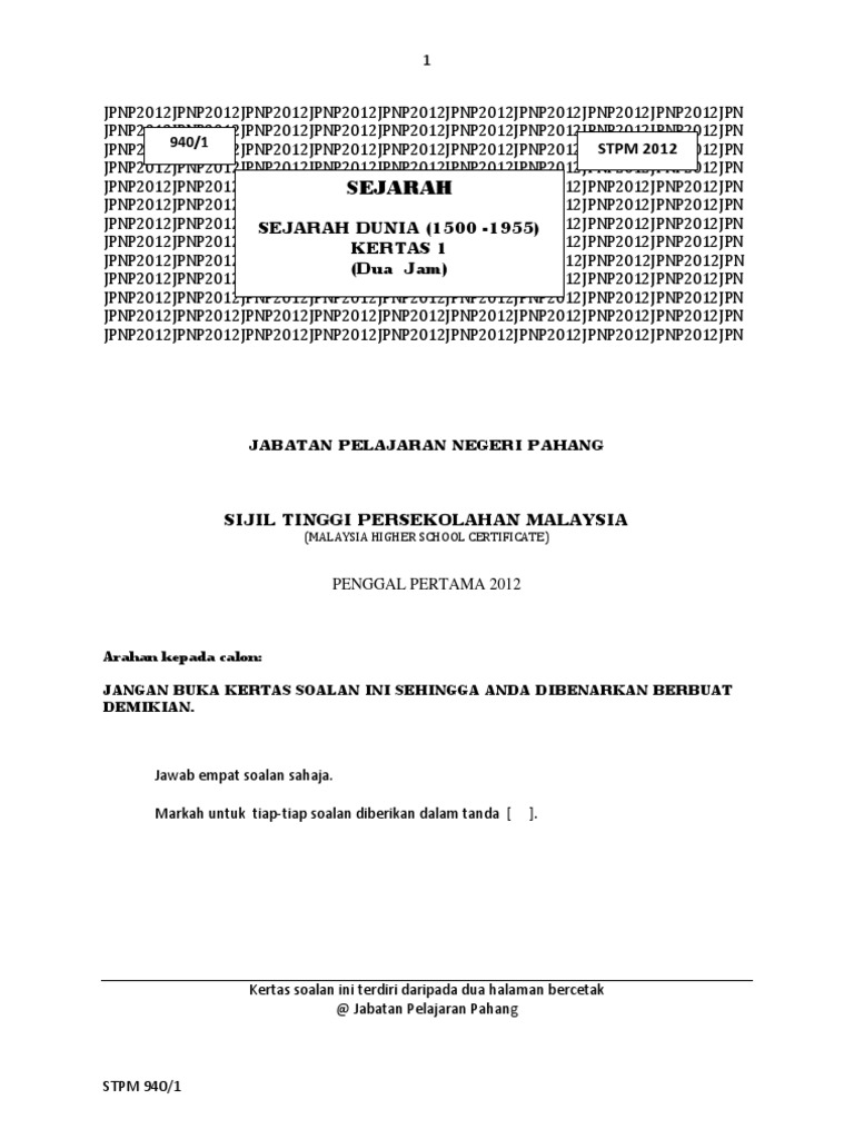 Percubaan Stpm Baharu 2012 2013 Soalan Sejarah Penggal 1