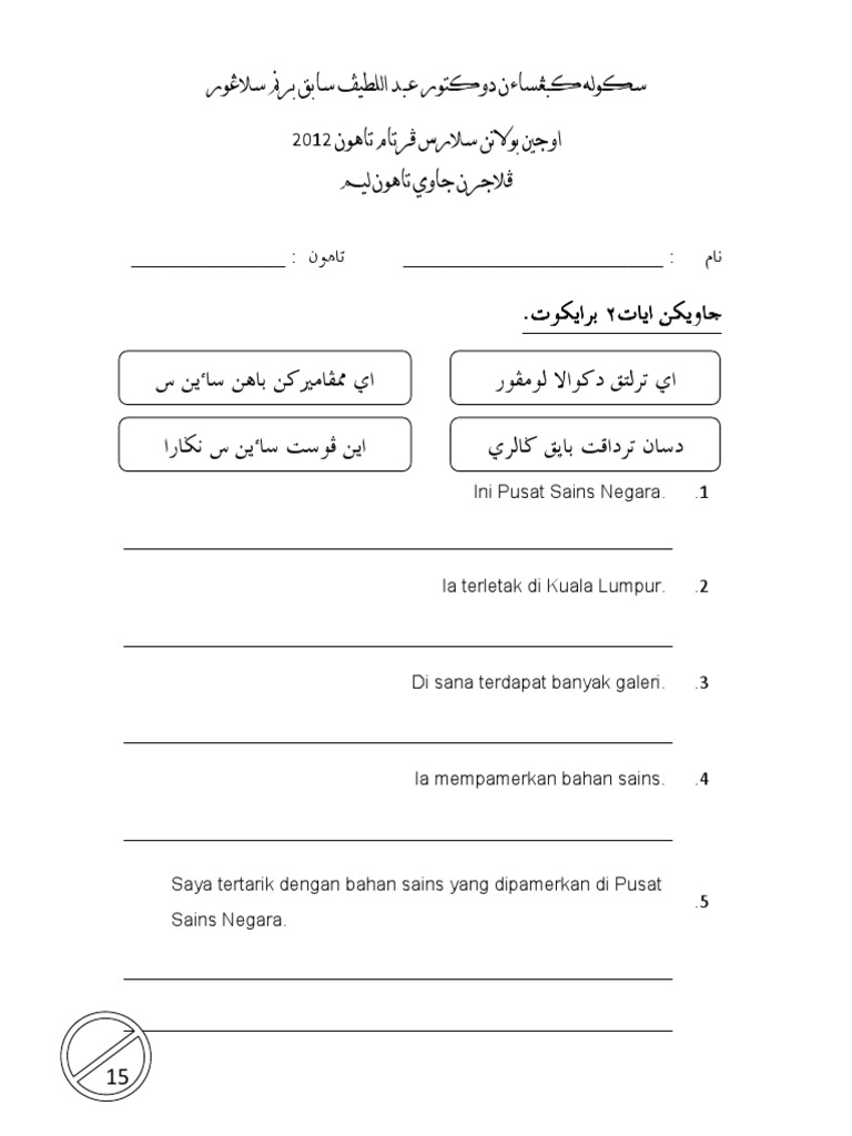 Kertas Ujian Jawi Tahun 6 Ujian 2