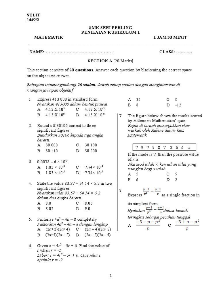 Contoh Soalan Kbat Matematik Spm