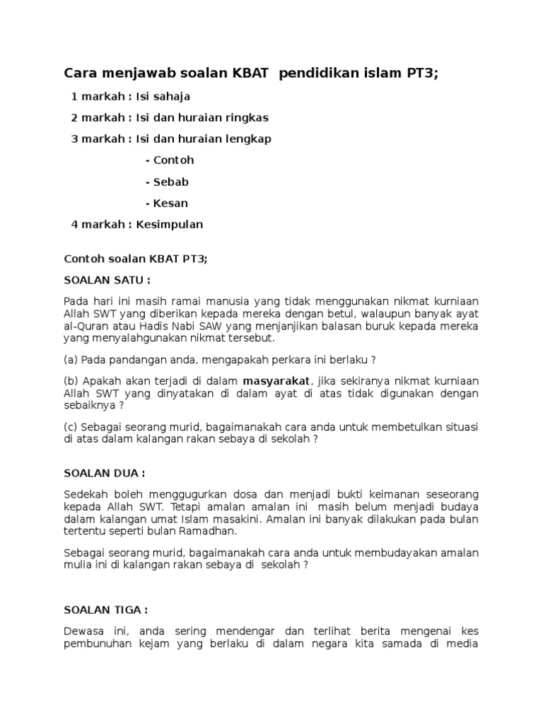 Contoh Soalan Dan Jawapan Kbat Pendidikan Islam Tingkatan 3