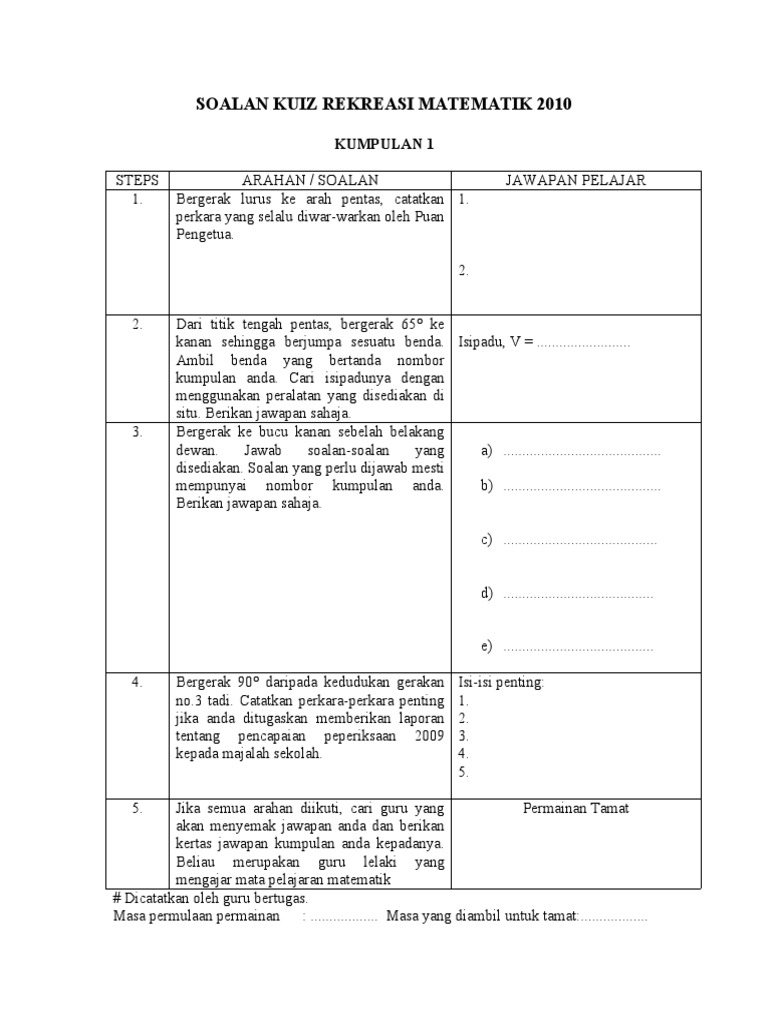 Contoh Soalan Kuiz Matematik Tahun 5 Lamaran R