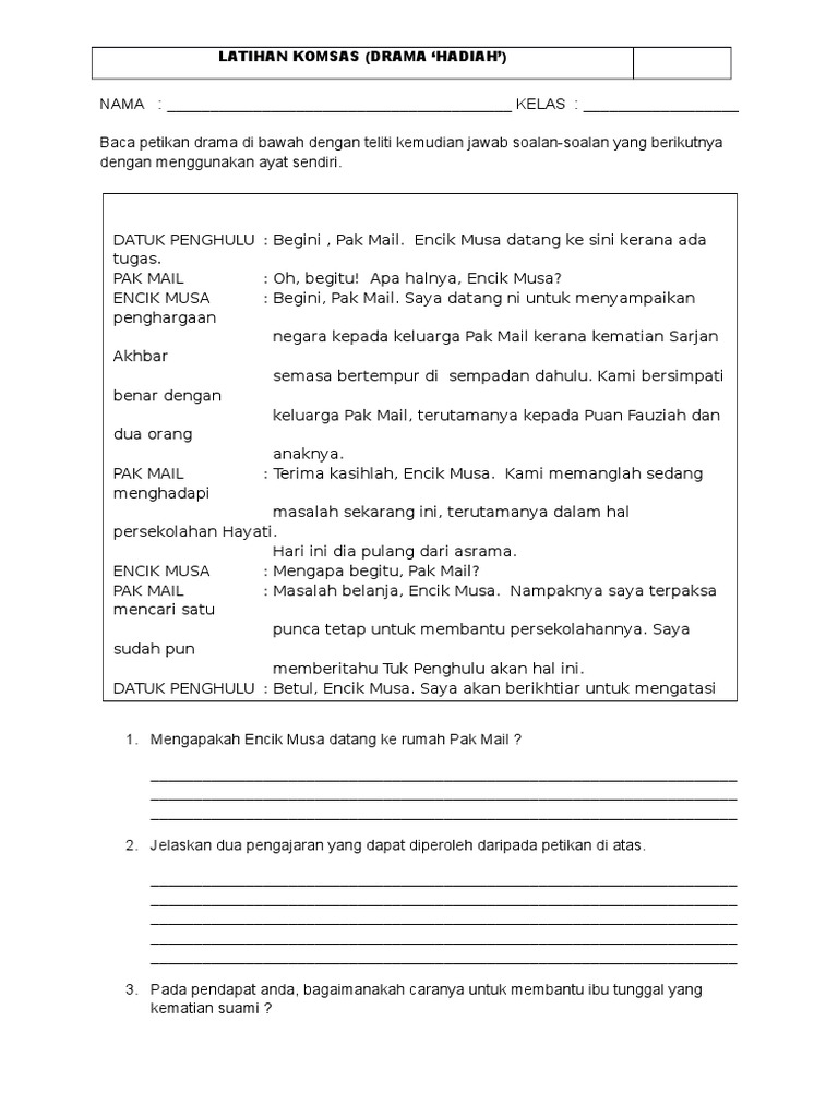 Latihan Komsas Tingkatan 1