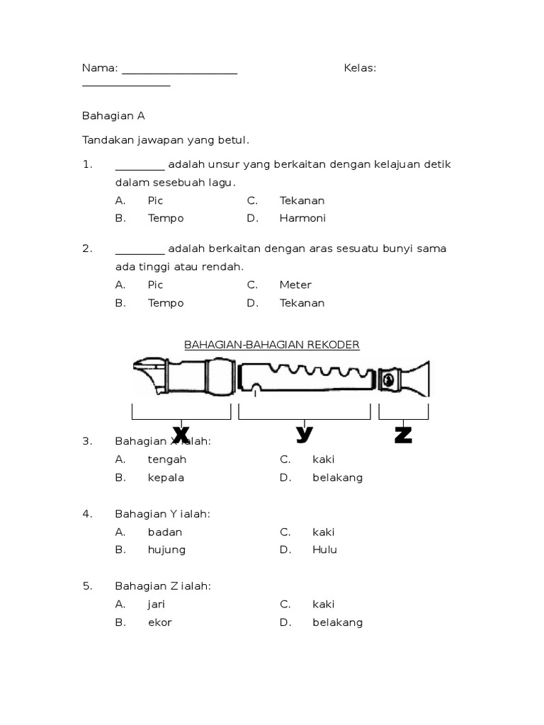 Soalan Muzik Tahun 5 Peperiksaan Pertengahan Tahun 2015