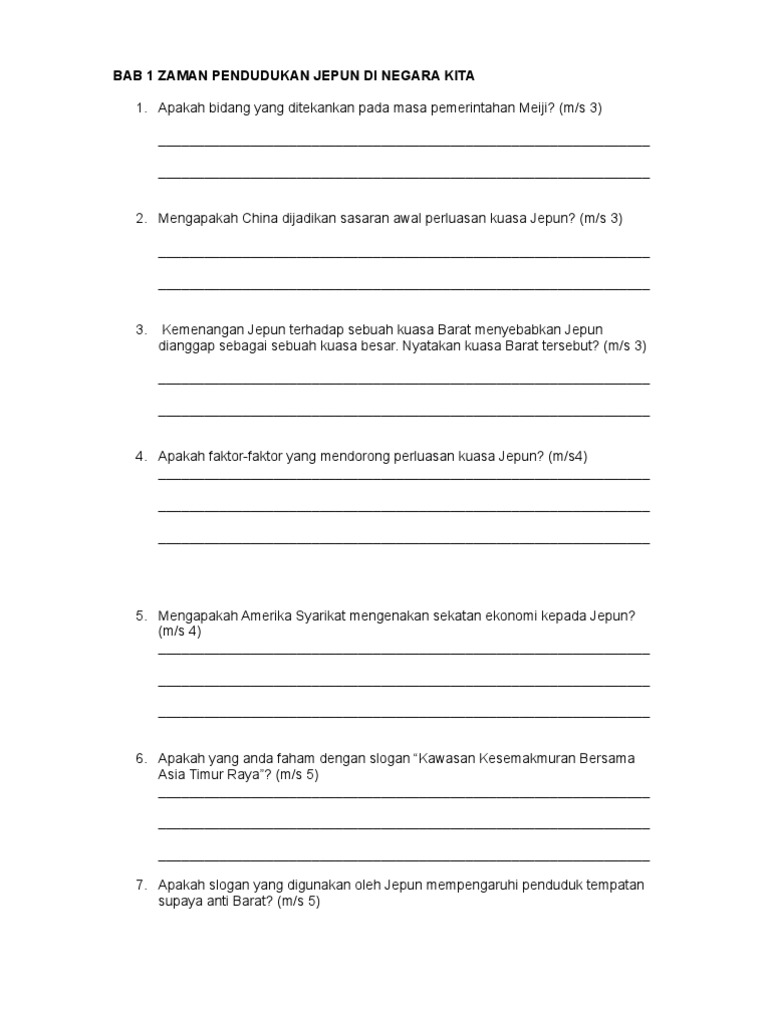 Soalan Latihan Sejarah Tingkatan 4 Bab 10 Tersoal N