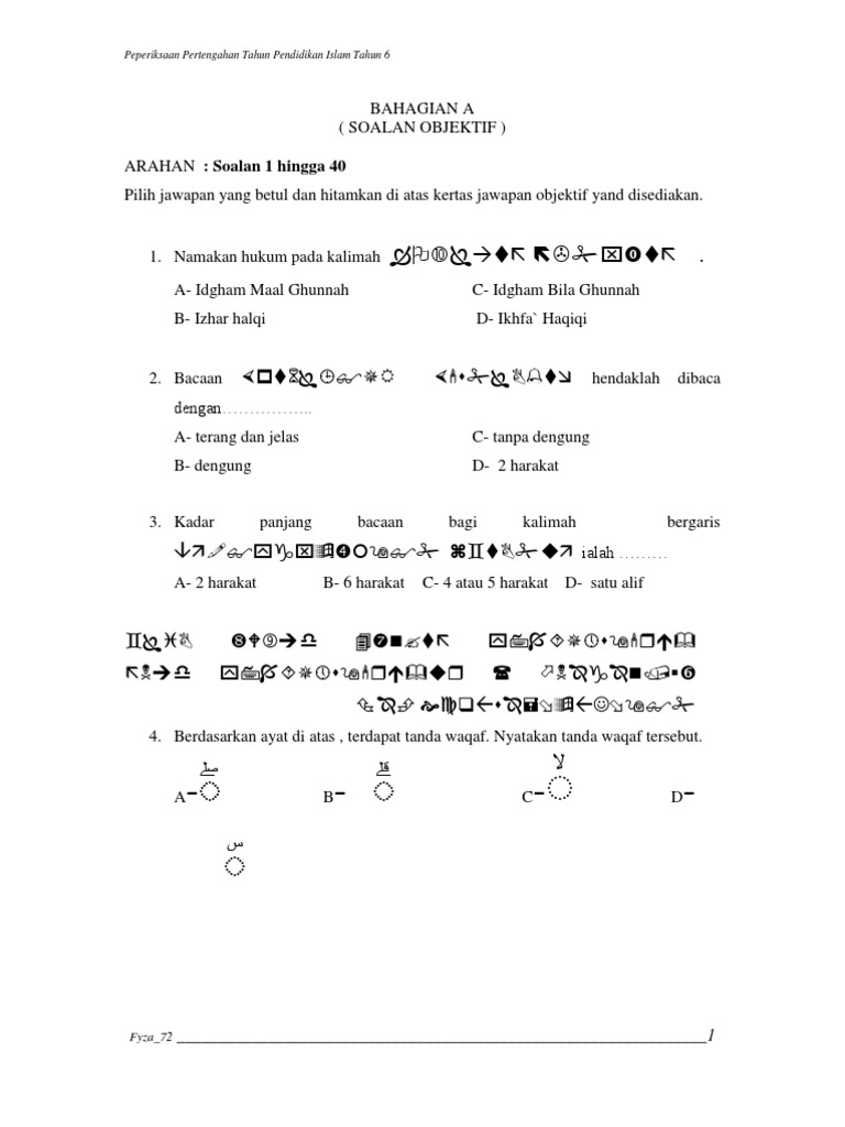 Soalan Pendidikan Islam Tahun 6 Bulan Mac Kuora Y
