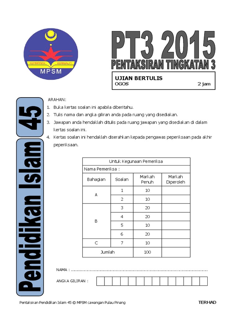 Soalan Pend Islam Pt3 2015 Pulau Pinang