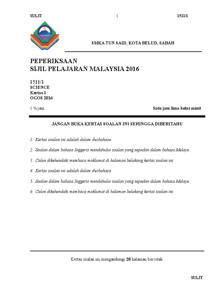 Kertas 1 Percubaan Sains Spm 2016 Doc