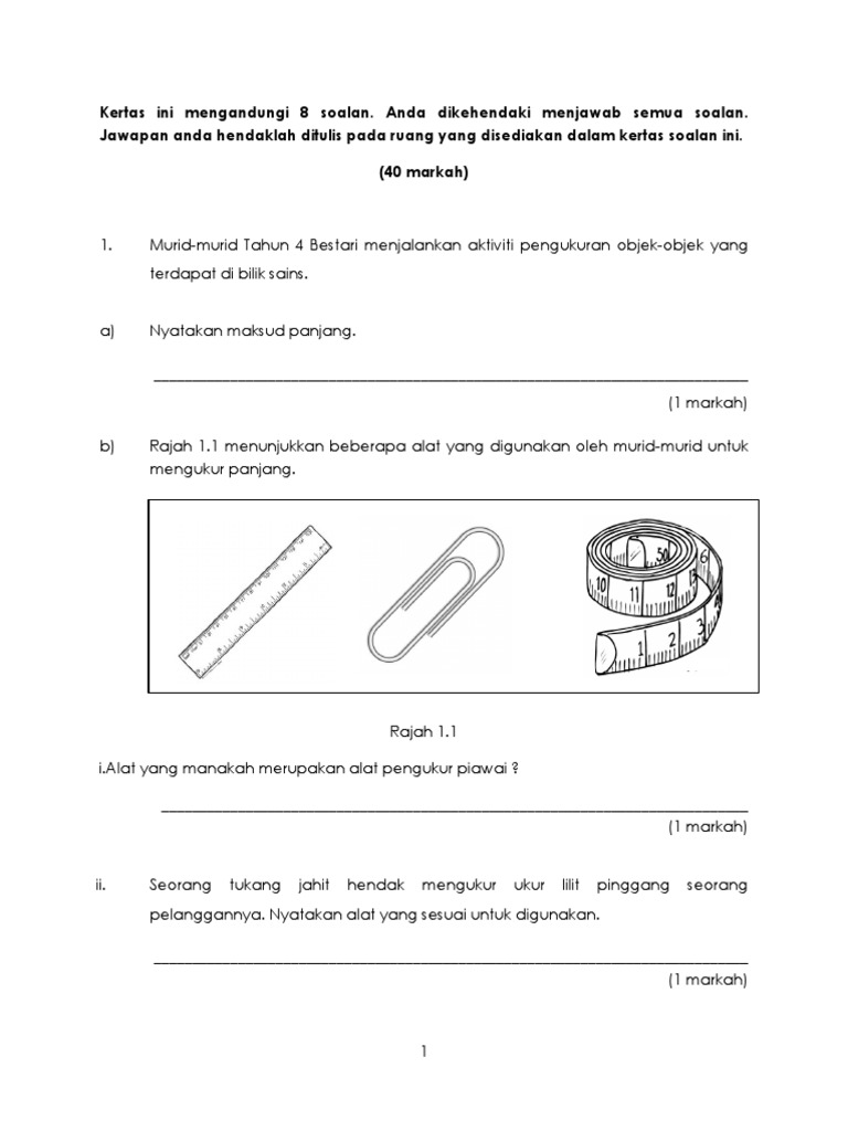 Soalan Sains Tahun 4 Pengukuran Lamaran M