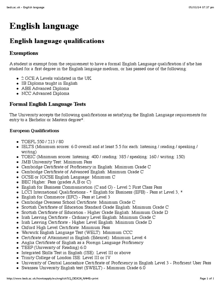 English Language Qualifications Behavior Modification Students