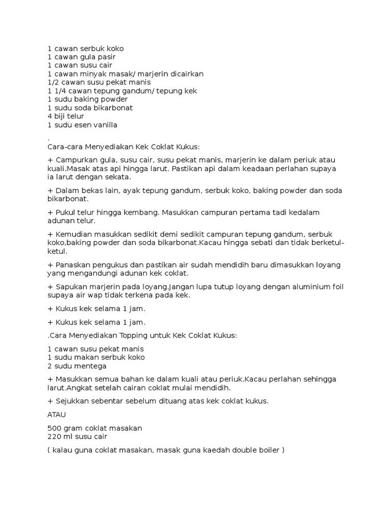 Kek Coklat Kukus Guna Sukatan Cawan