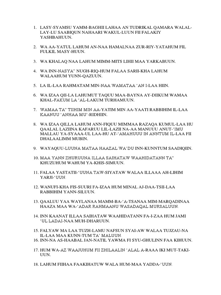 Surah Yaasin Dalam Arab Dan Rumi Serta Terjemahannya